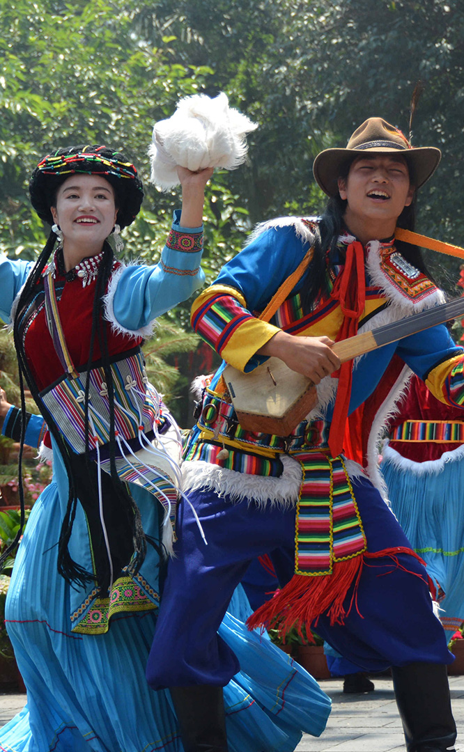 云南省境內(nèi)的藏族人口約12萬(wàn),主要聚居在云南迪慶藏族自治州,少量散居于麗江、貢山、永勝、寧蒗等縣。藏族信奉藏傳佛教,白色被藏族視為純潔神圣的象征。藏族村占地21畝,村內(nèi)有大小中甸地區(qū)的坡頂民居和德欽地區(qū)的雕樓式平頂民居。莊嚴(yán)神圣的藏傳佛寺,壯觀的迎賓白塔,象征吉祥和睦的“白牦牛”雕塑與獨(dú)具風(fēng)格的藏式建筑互為映襯,相得益彰。藏族主要節(jié)日有:藏歷年、丹巴日古(七月夏游節(jié))、昂曲節(jié)、格冬節(jié)等;主要禮節(jié)是...